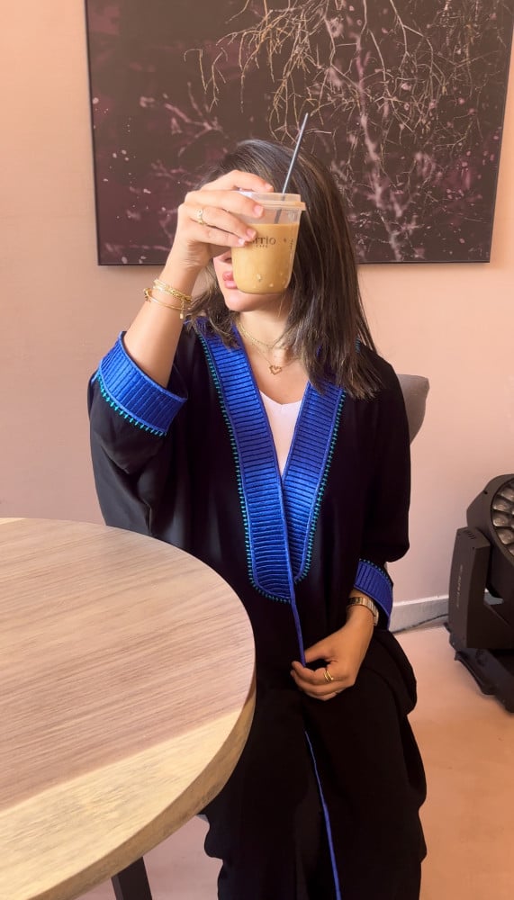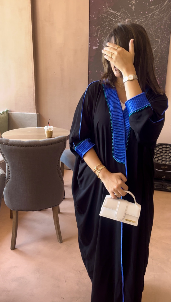 متوفر مع طرحة سوداء طول مترين مع تطريز ازرق في الطرف